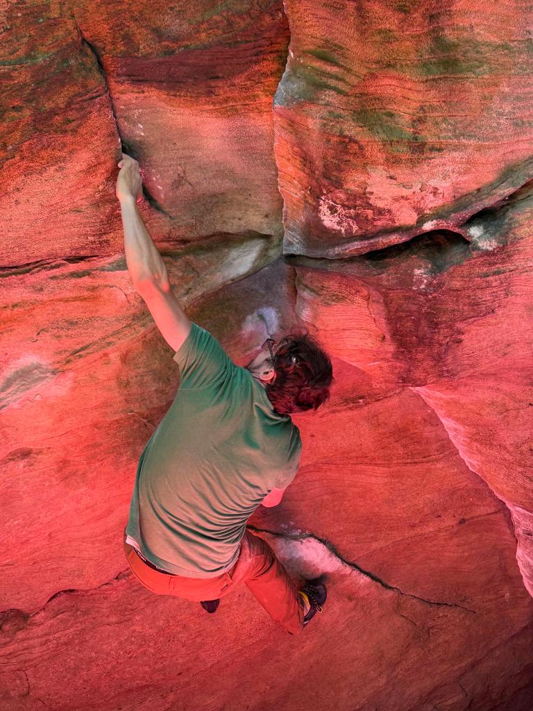1. First, one of my general long-term athletic goals is to become a solid 5.12 climber—to be able to confidently jump on any 5.12a–5.12d and feel comfortable working the moves. This was my first 12a on lead, and it feels like crossing a little milestone.